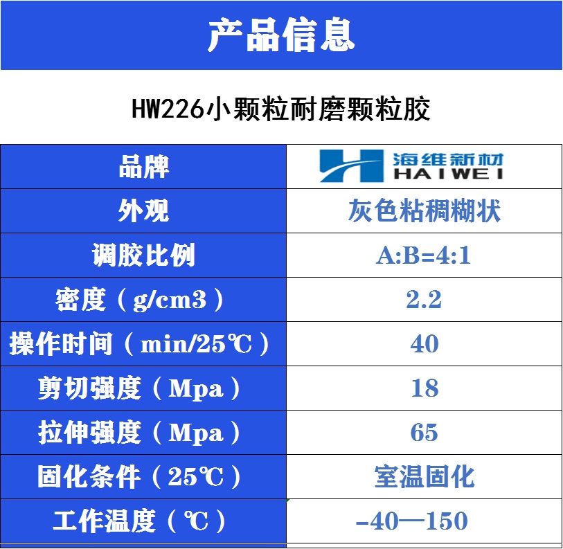 產(chǎn)品名稱:HW236耐磨顆粒膠 小顆粒膠 耐磨修補劑 快固耐磨涂層 耐磨防護劑